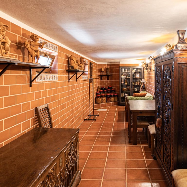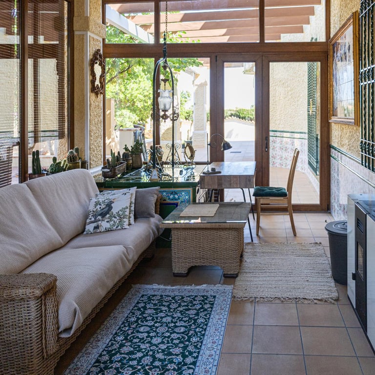 I. The main house, accessed via the impressive entrance hall and comprising three bedroom suites (1 in the ground floor and 2 in the first floor, each one with a bathroom ensuite), formal living and dining rooms, conservatory, kitchen and bodega.